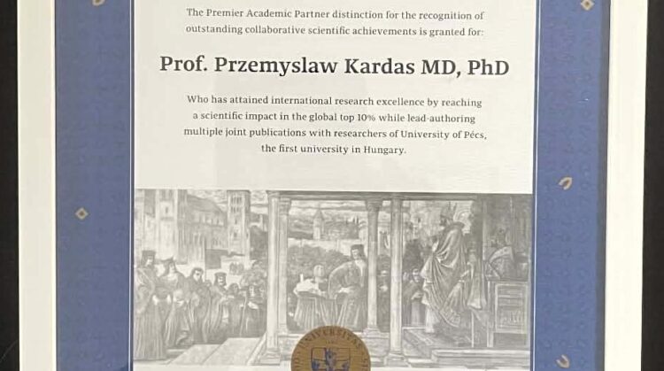 Prof. Przemysław Kardas otrzymał certyfikat Primarius Academicus Socius przyznany przez Uniwersytet w Peczu, stanowiący wyraz uznania dla dotychczasowej współpracy naukowej oraz wspólnie realizowanych projektów badawczych. Wyróżnienie to zostało nadane w kontekście obchodów Dnia Węgierskiego Szkolnictwa Wyższego i nawiązuje do bogatej tradycji Uniwersytetu w Peczu, którego początki sięgają 1367 roku.